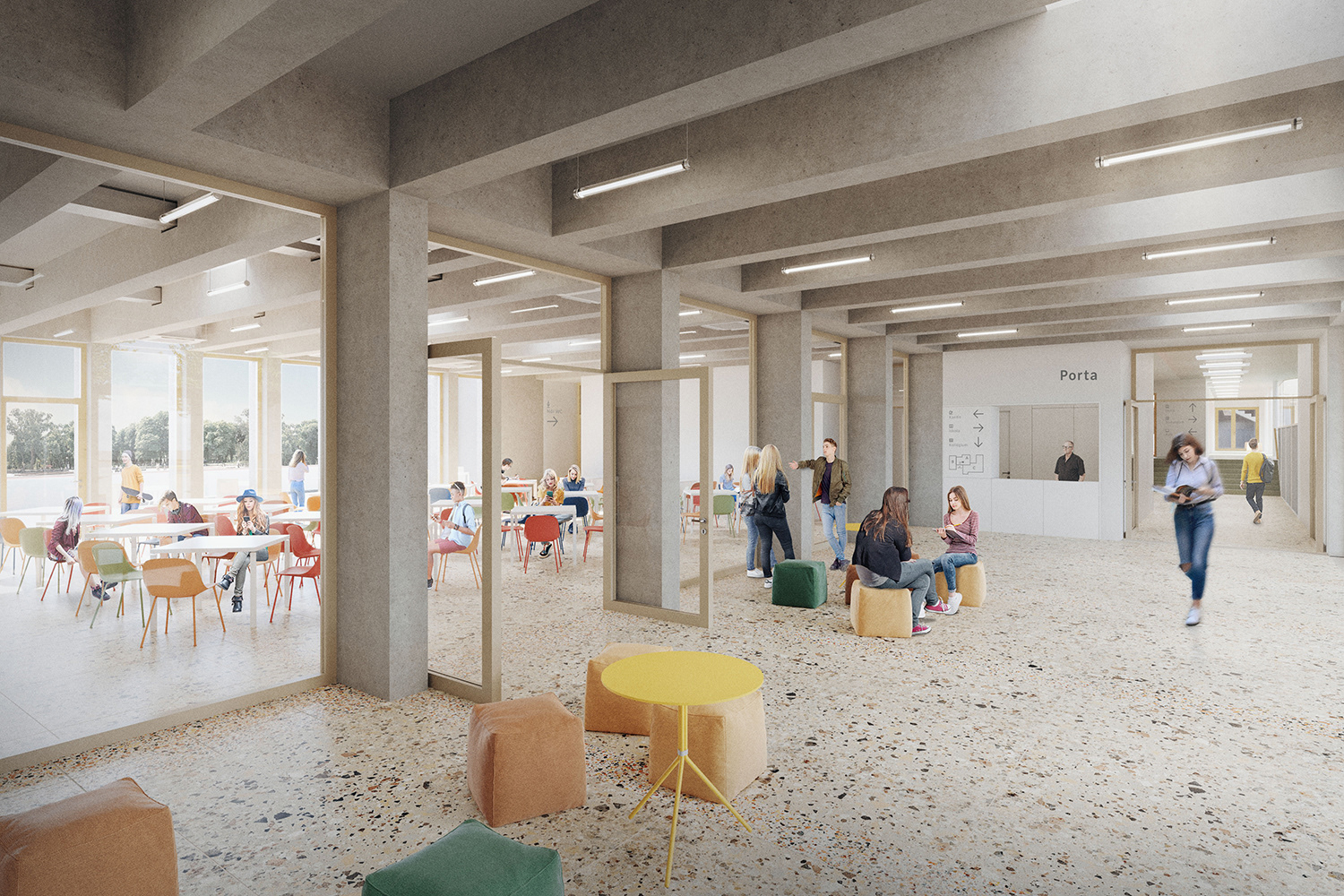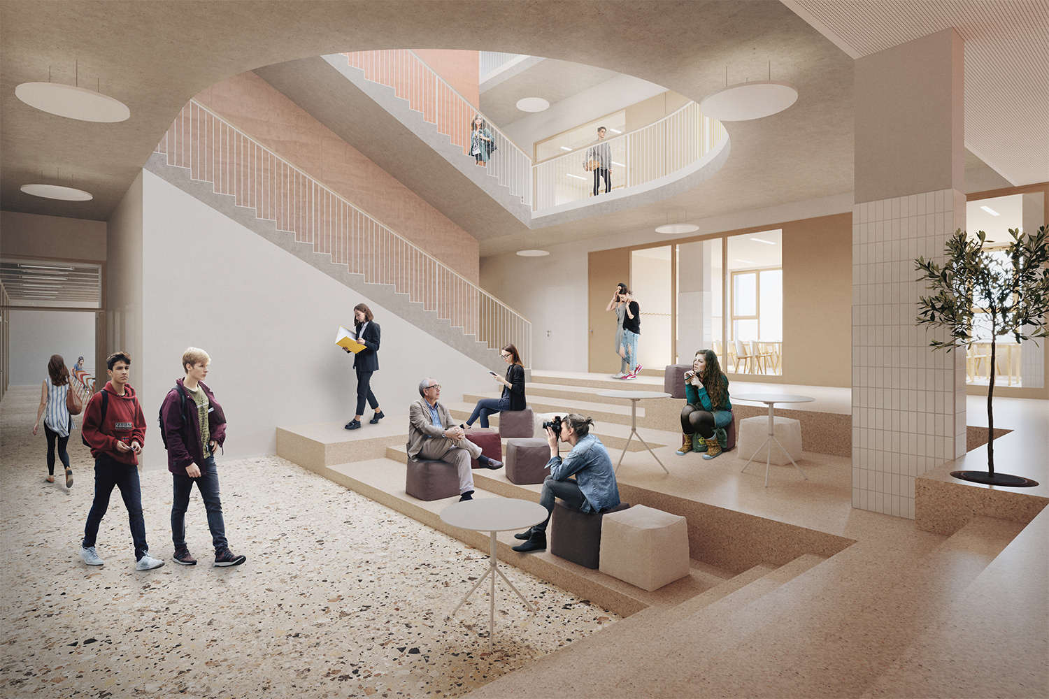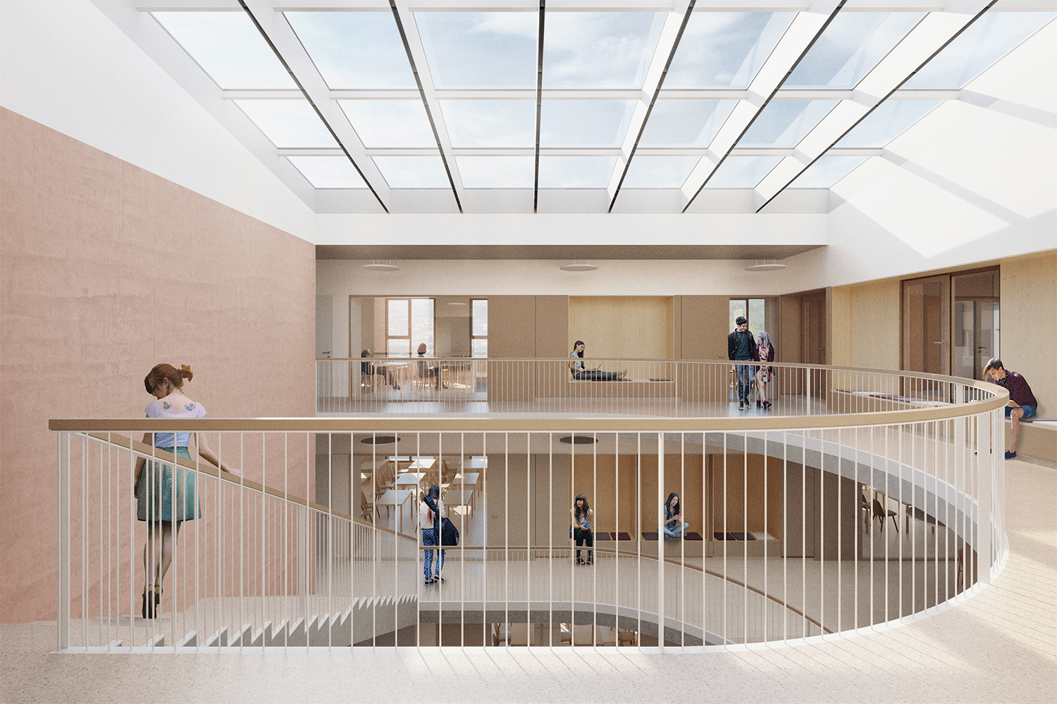 Changing conditions in an existing school and the lack of certain functions prompted the need to expand the institution. The school will become complete with a new assembly hall, classrooms and canteen, as well as a dormitory building. The existing mass of the school building and gymnasium block will be complemented by the new school mass and the cube of the dormitory. The single-storey building section connecting the masses of the complex will form the transport axis organically linking the different phases and functions. The school's new entrance, facing the main road of the city of Nagykálló, proclaims the complex's place among the educational institutions of the future.