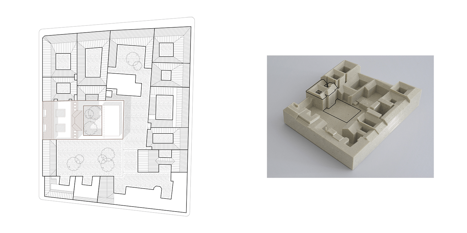A meglévő házban helyeztük el az közösségi-és irodafunkciókat, a co-working tereit pedig az új tetőben kézzeltük el. Az új tetőt úgy terveztük meg, hogy az az utcáról és az udvarról továbbra is változatlan marad.